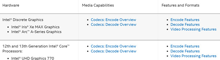 Step 2. Note down the graphics, and refer to the Intel document on Media Capabilities Supported by Intel Hardware.