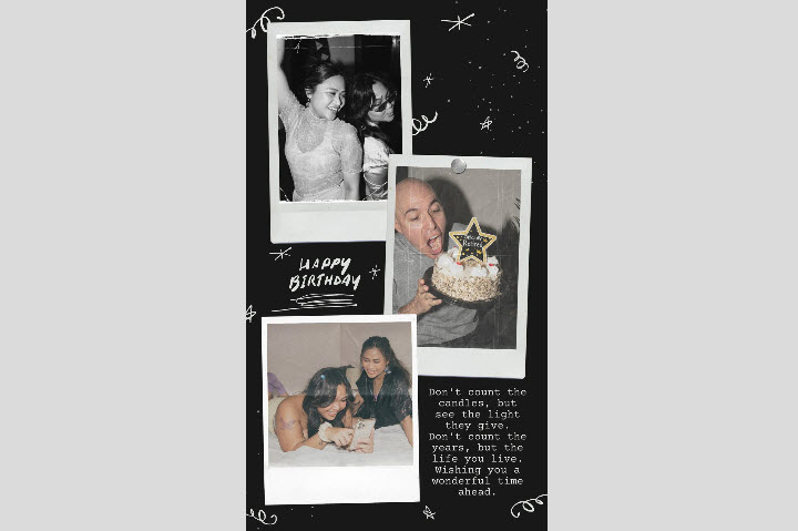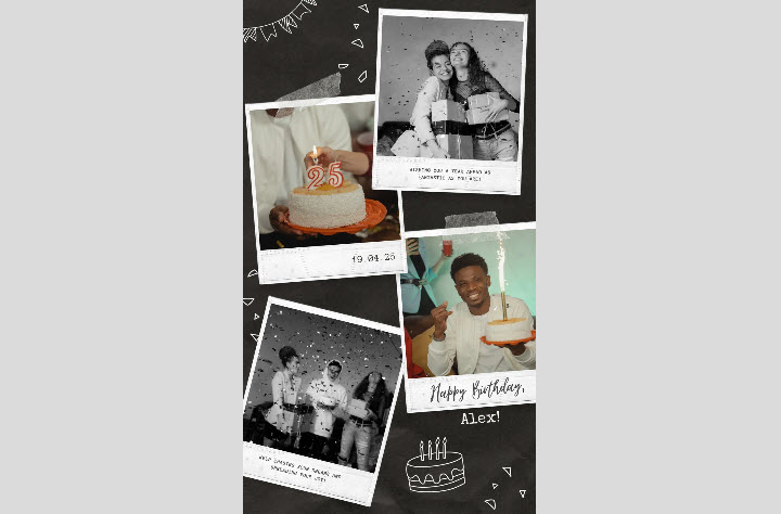 In addition to the montage, you can create a visually captivating collage that blends photos, videos, and personal touches to celebrate the birthday person. You can start with a selection of meaningful images and arrange them in a dynamic layout using Instagram’s tools. Add short video clips that capture special moments and include stickers, emojis, or hand-drawn doodles that reflect your relationship. Enhance each image with captions or text overlays that highlight the significance of the moment. Finish with a central, standout image framed with decorative borders, resulting in a rich, layered collage that tells the story of your bond and makes the birthday celebration truly unforgettable.