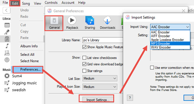 (*)If you choose MP3 encoder, it will alert you that iTunes will work as a free MP3 converter and convert WMA to MP3. Otherwise, it won't add the music into the library, and you won't be able to add artwork thereafter.