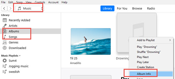 2. Right-click on the Song/Album, and hit Album info in the context menu.
