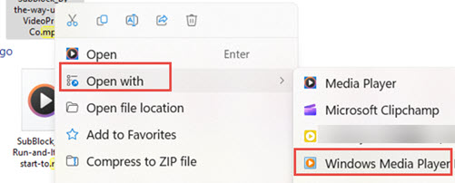 2. Select Open with > Windows Media Player.
