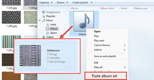 6. Right-click on the music album, and hit Paste album art.