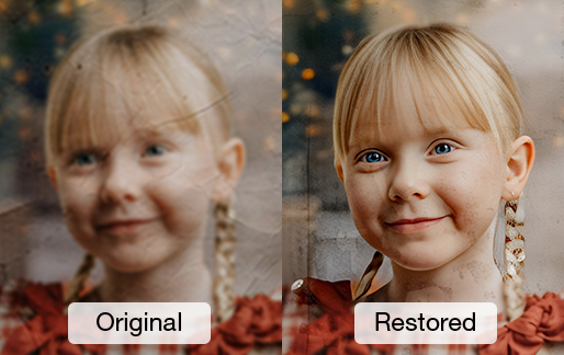Faithfully restores faces with superior clarity, delivering precise facial features and realistic details such as skin, eyes, lips, and hair.
