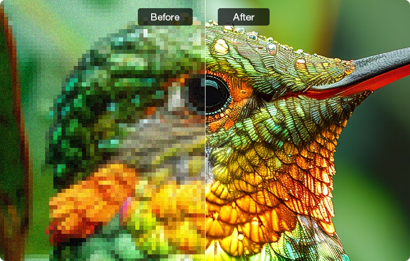 Increase the image size and resolution to make your images bigger with one click. Without detail loss, pixelation, and blurs, you can enjoy the upscaled 4K/8K/10K art photos and pictures for printing, wallpaper and so on.