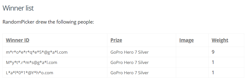 The winners of GoPro HERO7 Silver campaigns was drawn on randompicker.com. Here is the public record: https://app.randompicker.com/protocol/611275x69463