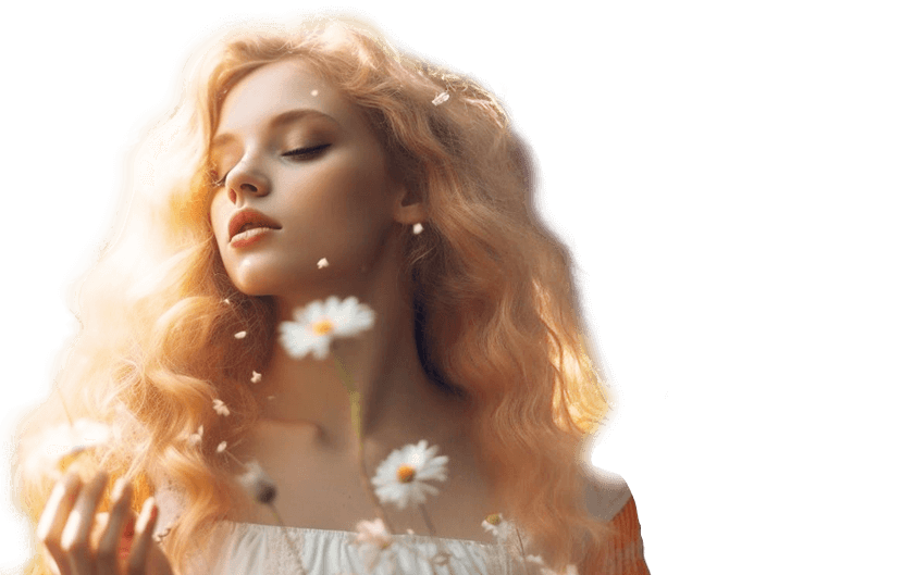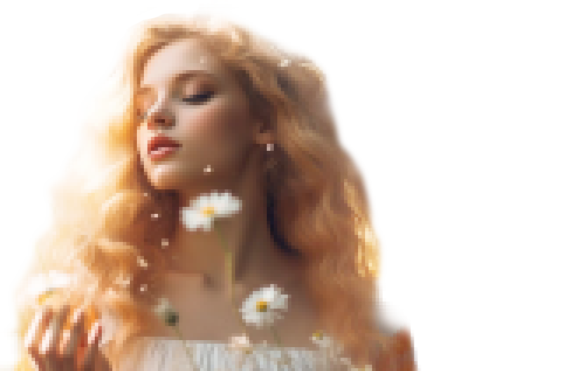 Prompt 1: Portrait of a girl standing before a golden, glittery yellow wall. Detailed and atmospheric with a Y2K aesthetic, nature-inspired imagery, macro photography style. --ar 65:34 --v 6.0