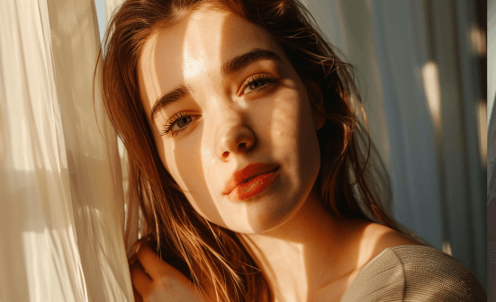 Prompt 2: [Image Reference URL] 35mm photography of a young woman outdoors, shielding herself from the sun. Glimmering light effects, nature-inspired, emotive facial expression. Hyper-realistic water details, dark green and light amber color palette. Delicate, portrait style with a Minolta Riva Mini camera look. --ar 16:9 --v 6.0 --iw 3