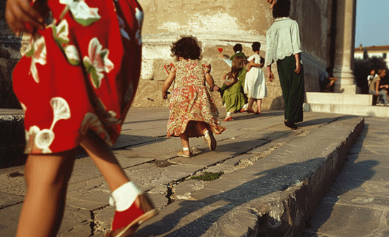 •<analog film type> portrait of <subject>.Prompt example: Lomo Redscale film featuring the close up of children hanging laundry on the line, other children holding ice cream, an ice cream truck is in the background with kids eating ice cream, a busy street scene, in the style of vintage photography by [artist name].