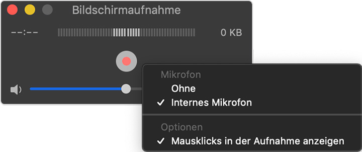 QuickTime Player ist eine integrierte Anwendung auf Mac-Computern, die für Bildschirmaufnahmen verwendet werden kann, einschließlich Aufnahmen in 4K-Auflösung. In den Aufnahmeeinstellungen können Sie wählen, ob Sie den gesamten Bildschirm oder einen ausgewählten Bereich davon aufnehmen möchten. Sie können auch ein Mikrofon oder eine andere Audioquelle auswählen. QuickTime hat jedoch einige Einschränkungen bei der Bildschirmaufnahme. Eine davon ist, dass die Facecam verschwindet, wenn Sie ein Fenster im Vollbildmodus öffnen, selbst wenn die "Immer im Vordergrund"-Option aktiviert ist. Die zweite Einschränkung ist, dass QuickTime keinen simultanen internen Ton und Voice-over aufzeichnen kann. Dafür muss ein Drittanbieter-Tool verwendet werden.