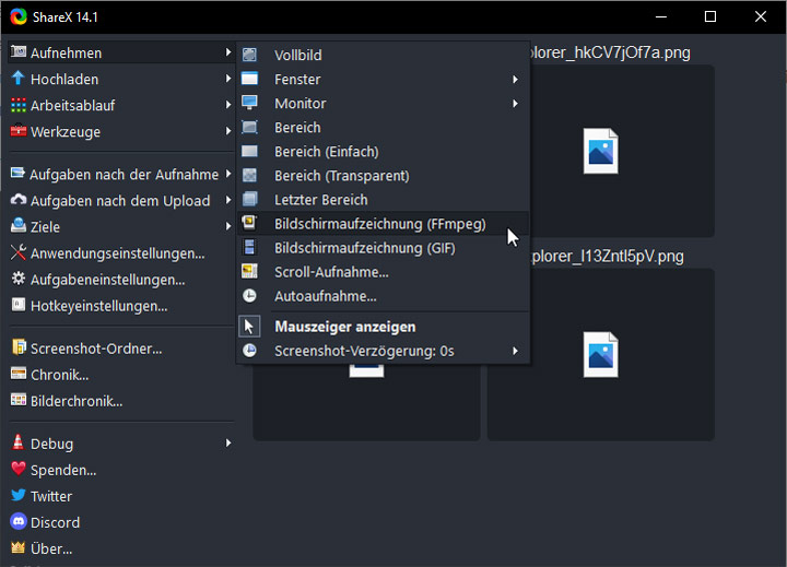 ShareX ist ein leichtgewichtiges Aufnahmeprogramm, das es Ihnen ermöglicht, jeden Bereich Ihres Bildschirms zu erfassen oder aufzuzeichnen. Es bietet eine Reihe von Funktionen wie Auto-Aufnahme, Bildanmerkungen und mehr. Neben den Videoformaten AVI und MP4 unterstützt ShareX auch die Aufnahme von GIFs. Zusätzlich zur Bildschirmaufnahme bietet es auch verschiedene Produktivitätstools wie Farbwähler, Lineal, OCR und mehr.