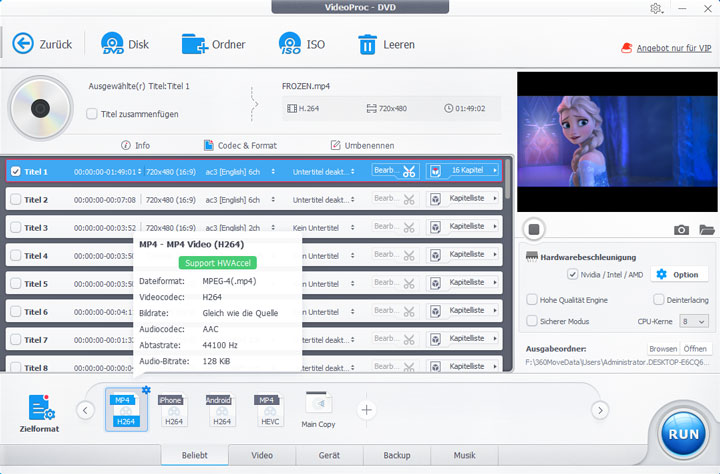 - Keine Tonprobleme beim Rippen von DVDs in Container im MP4 Format.