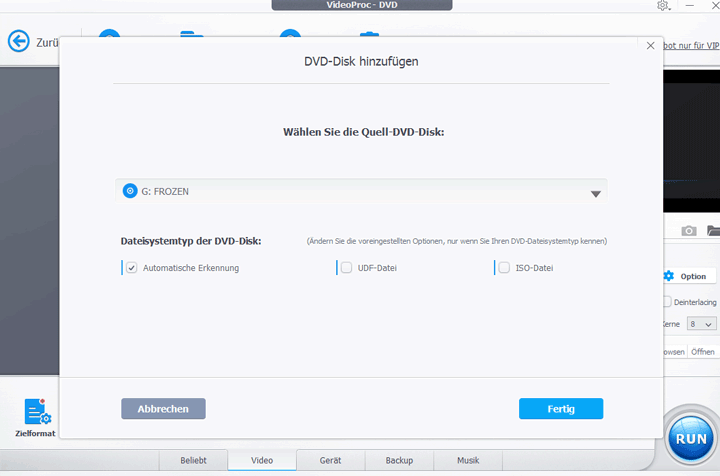 Haftungsausschluss: Wir raten davon ab, autorisierte oder kopiergeschützte DVD-Videos zu rippen oder zu konvertieren. Bitte überprüfen Sie Ihre lokalen Gesetze, bevor Sie DVDs digitalisieren.