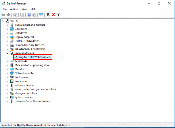 Schritt 2. Navigieren Sie im Geräte-Manager zu Bildverarbeitungsgeräten, erweitern Sie es und klicken Sie mit der rechten Maustaste auf die Logitech-Webcam.