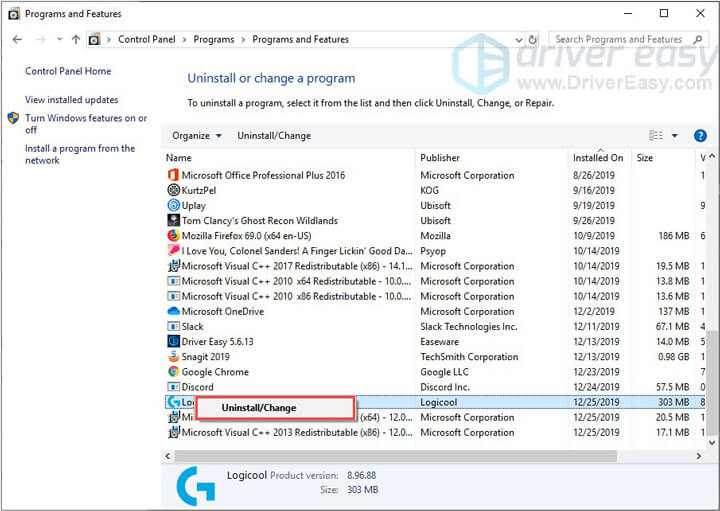 Schritt 2. Klicken Sie mit der rechten Maustaste auf die Logitech-Software, wählen Sie "Deinstallieren" und wählen Sie "DER TREIBER".