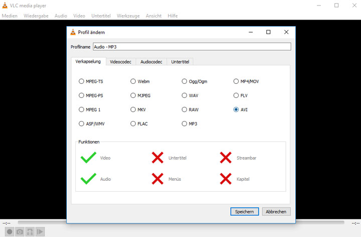 Achtung: VLC hat standardmäßig kein AVI in seinen Ausgabeoptionen. Sie müssen ein Standard AVI Profil erstellen, aber wegen einiger unbekannter Fehler hat es keinen Ton. Bevor wir in die Anleitung zum Umwandeln von MP4 in AVI in VLC eintauchen, sollten Sie sicher sein, dass Sie damit umgehen können.