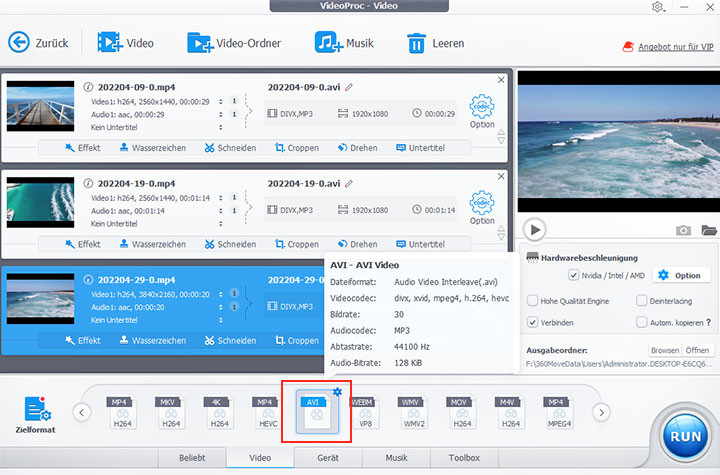 VideoProc Converter AI - Bester MP4 to AVI Konverter kostenloser