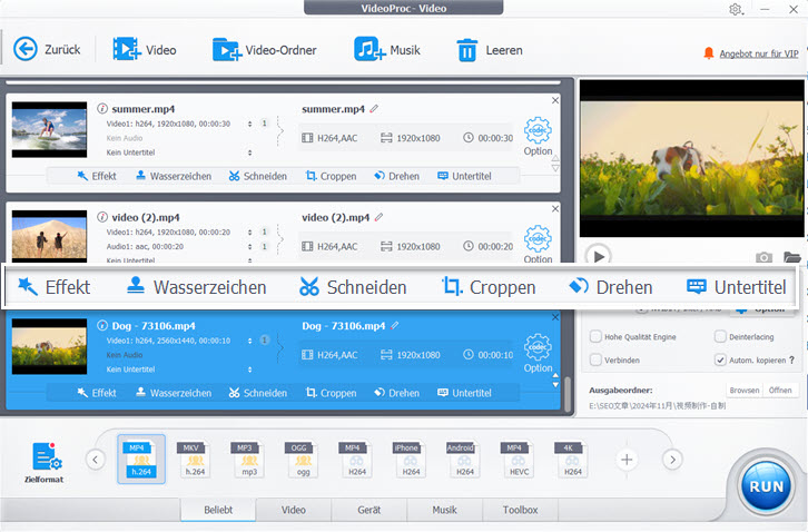 Neben als ein Video-Schneiden-Programm für Mac und Windows ist VideoProc Converter AI auch mit einer Reihe von zusätzlichen Tools kombiniert, wie etwa Video-Cropper, Video-Joiner, Video-Stabilisator, usw., kann Ihre anderen komplizierten Videobearbeitungsaufgaben bequemer handhaben.