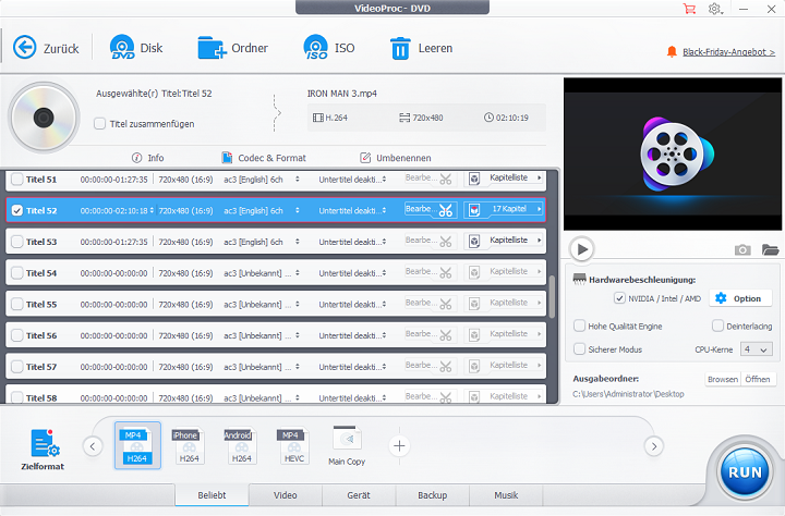 Am besten für: die Konvertierung von verschlüsselten VOB-Dateien in MP4 mit der besten Qualität.