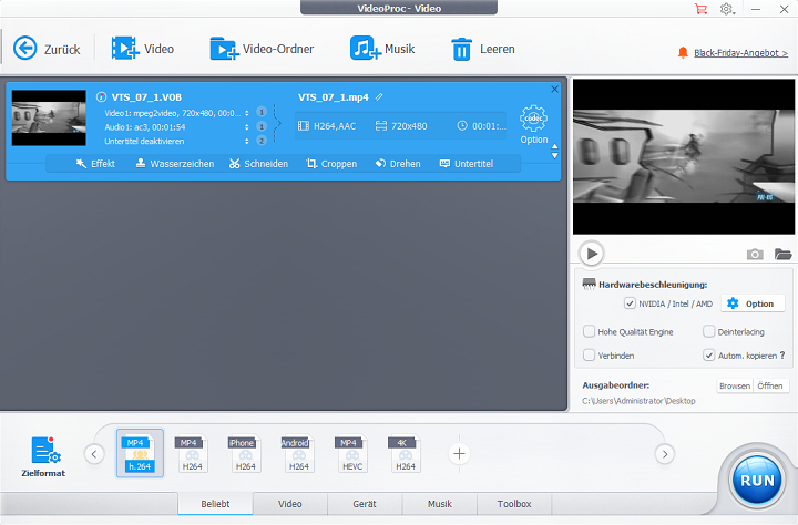 - Am besten für: die Umwandlung von VOB in MP4 und einfache Bearbeitungen.