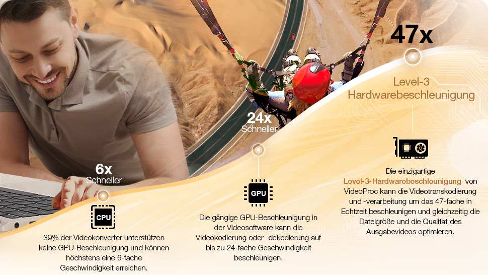 Ihr sucht eine umfangreiche und effiziente Software zum Schneiden und Bearbeiten eurer Videos? Gerade bei der Videobearbeitung ist Rechenleistung wichtig. VideoProc Converter will die Leistung eures Computers voll ausnutzen und unterstützt die Hardwarebeschleunigung von Intel, AMD und NVIDIA.