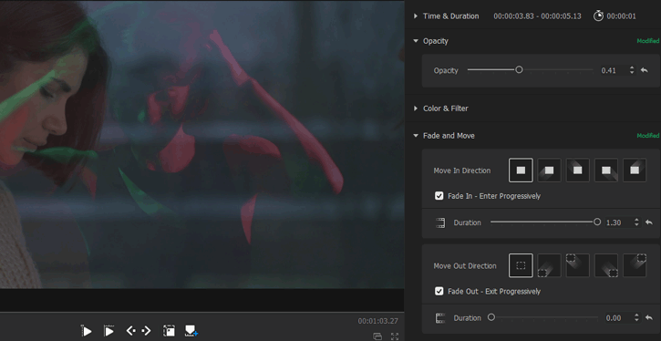 Step 4 Select the separated short clip. Go to the Inspector Panel and find the Opacity menu. Move its slider to change the opacity.