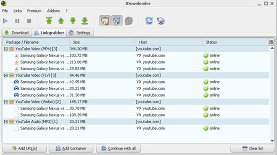 It automates the processing by detecting URLs from the clipboard and analyzing all the available videos from that link. With the CAPTCHA tool and link grabber, JDownloader 2 can pass the verification of "I'm not a robot" to bulk save videos on certain sites. You can also set up bandwidth limitations or pause downloads. These features come in handy when you are multi-tasking on the computer.