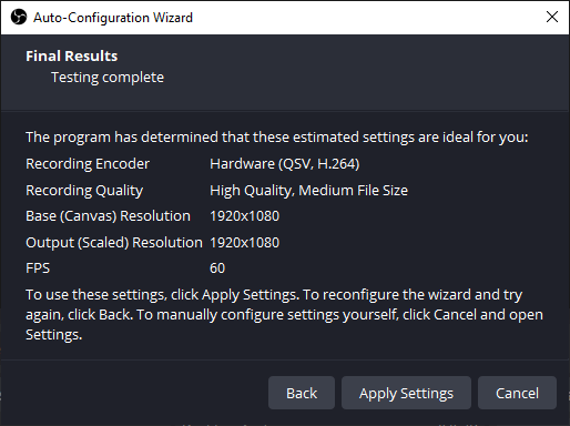 The Auto-Configuration Wizard offers estimated ideal OBS recording settings. You can achieve a balanced video quality. However, you'll still need to delve into the settings to tweak them for the best results.