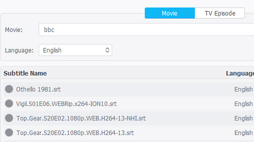 Step 3. Search by the name of the movie or TV episode and choose a language. Click the "Download" button at the bottom.