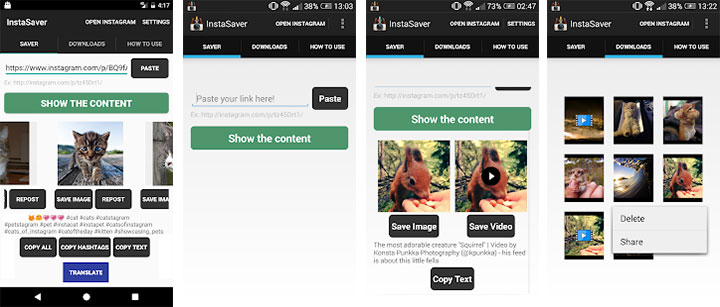 Regrann is the app you'll need if you can only install one program to download Instagram videos. Saver Reposter lets you switch from the app to Instagram in just one click. With Regrann, there's even no need to leave Instagram. It works flawlessly when you click on the three dots below the comments and select "Copy share URL". Regrann helps save the video and lets you repost them onto your profile with or without a watermark. It's one of the few apps that can download Instagram stories.