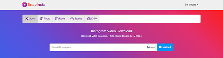 SnapInsta is the Instagram version of SnapTik. SnapTik allows you to download TikTok videos, while SnapInsta helps with saving Instagram videos. It's an efficient Instagram downloader to save photos and videos online. Through the website, you can easily download your favorite content with high quality in just a few seconds, be it Instagram Story, Reels, or IGTV videos. SnapInsta is a near-perfect online Instagram downloader regardless of annoying ads on the page.