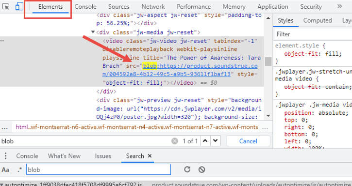 Here you will learn how to locate the source video file, and how to download it, both for live-streaming blob videos and for video-on-demand.