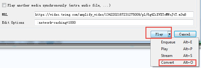 Step 3. Click the little triangle instead of clicking on the Play button, and you will see a drop-down menu. Hit Convert.