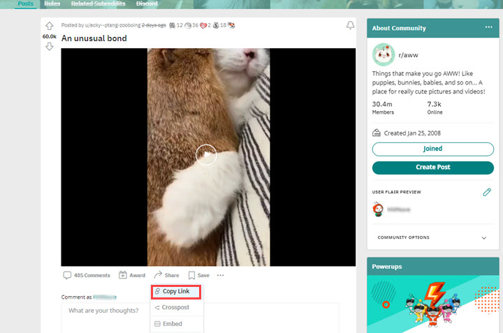 Step 1. Open a Reddit post. Click "Share" > "Copy Link" to with the URL of the Reddit video.