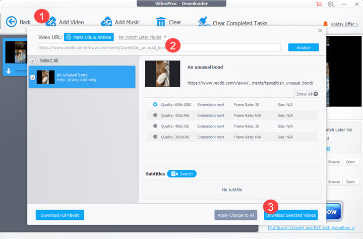 Tips: Some videos on Reddit are submitted from YouTube, TikTok, Twitter, or other platforms. Just copy the link of the original site and VideoProc Converter AI can download videos from any website.