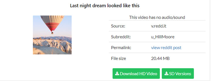 Step 3. Open the link and it will land you on an online Reddit downloader page. Choose to download HD video (720p) or the SD version (480p, 360p, 240p). Then you can download a Reddit video and save it on your local storage.