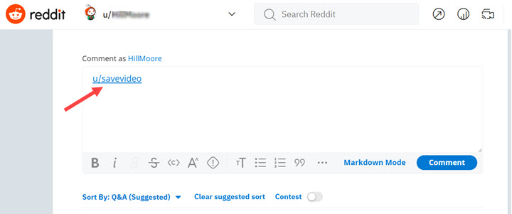 Step 2. Mention u/savevideo in the comment below and wait for the bot to reply a link.