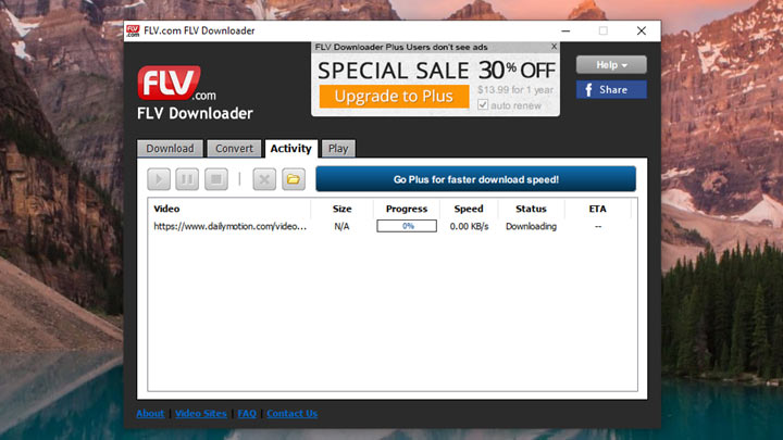 FLV Downloader was the go-to FLV downloader for many users but has lost ground to rivals like VideoProc Converter AI and CocoCut. This paid program allows you to download videos from 50+sites including Ebaumsworld, Dailymotion, Yahoo Video, and MySpace TV. If you subscribe to the premium plan ($19.90 per year), you can convert the downloaded FLV videos into MP4, MOV, WMV, AVI, or 3GP for improving the accessibility and shareability of the video files. Unfortunately, from our test, it always got stuck when downloading FLV or MP4 videos from video streaming sites.