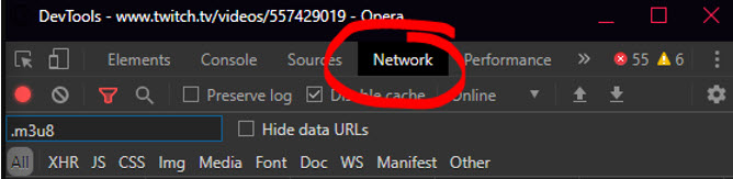 If the .m3u8 entries won't show up, you can click the Disable cache option. Alternatively, you can pause and reload the video, or refresh the page. Rules of thumb: make sure the video is playing.