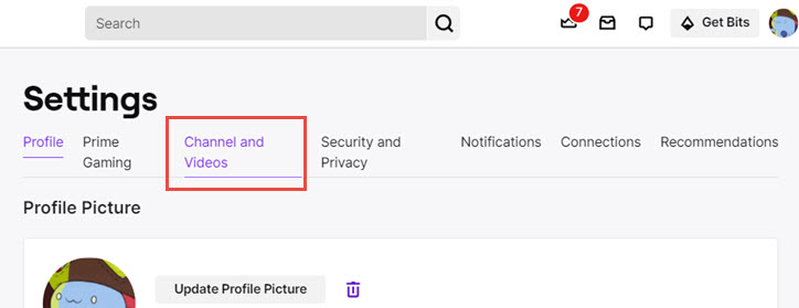 Step 1. Go to Twitch Settings by clicking your profile photos at the top right corner.