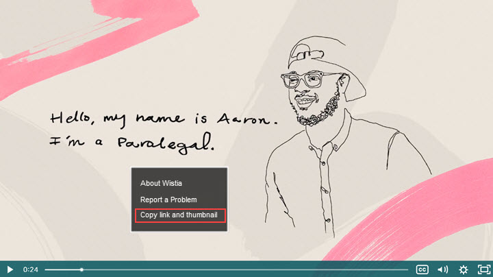 Open a Wistia video that is embedded to a site or email. Right-click on the video, then you will see three options, and choose "Copy link and thumbnail".