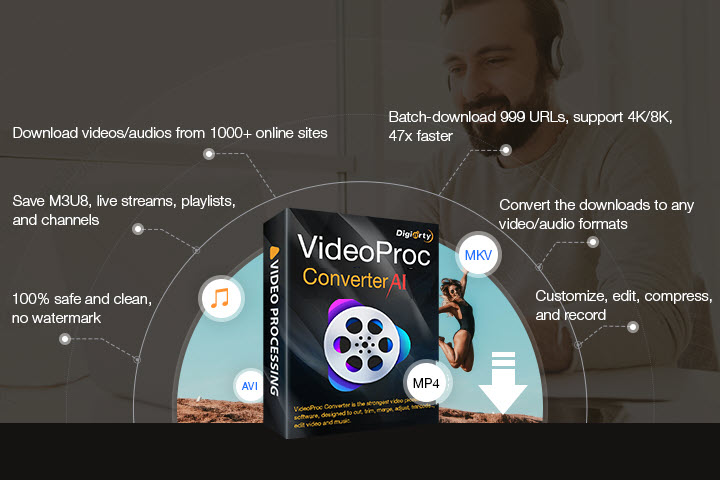 VideoProc Converter AI is a multifunctional video editor baked with a robust downloading engine. It is competent to download videos from 1000+ sites including Wistia, Facebook, Vimeo, Dailymotion, just to name a few, and save them in different formats and resolutions.