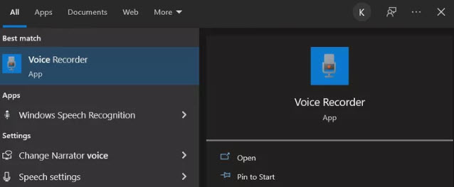 Step 1. Go to the Windows Start and search for Voice Recorder.