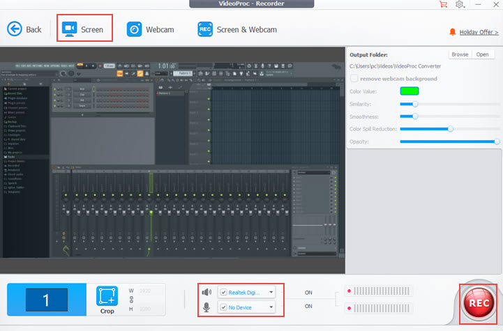 Step 3. Play audio in FL Studio. When it ends, stop recording in VideoProc Converter AI.