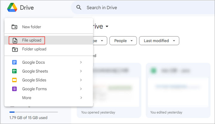Step 1. Upload the audio recording to your Google Drive. Just open the online service of Google Drive and sign in with your Google account. Click +New to upload the audio file from your computer.