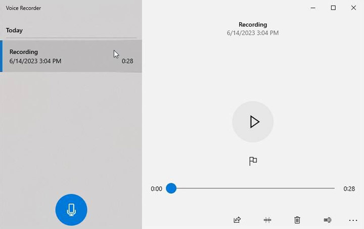 Step 4. While recording audio on Windows 10, you can hit the Flag icon to mark the point or the mistake part. Click on the pause icon to pause the recording. Click the Stop icon to end the recording.