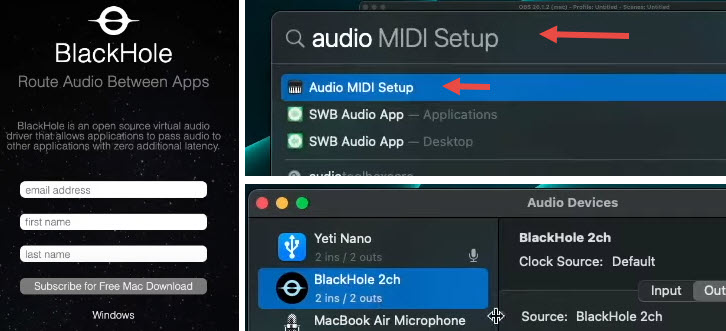 In the steps below, we will also need to set up the virtual multi-output audio device using the built-in Audio MIDI Setup app in Mac. By so doing, we will be able to record both the system internal sound, and those from the microphone at the same time.