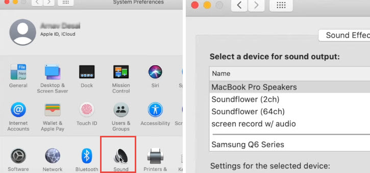Step 5. Go to Apple Menu > System Preference > Sound to select a device for sound output.