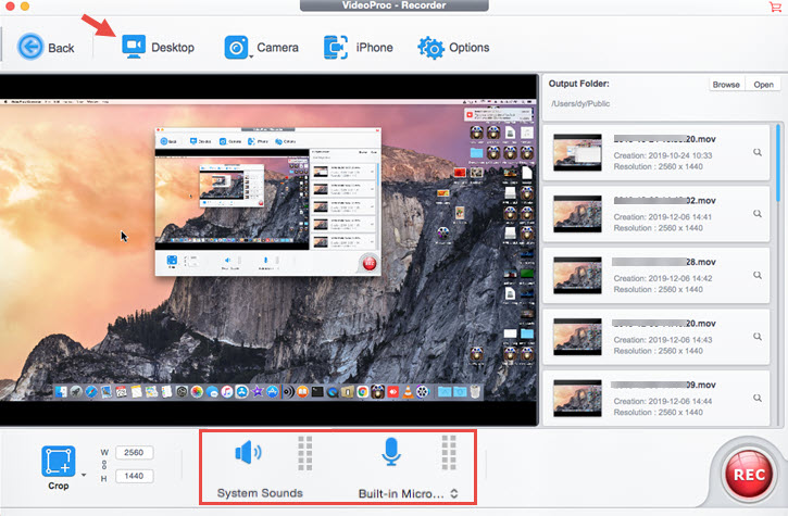 Step 3. Click the Desktop icon at the top, and toggle on System Sounds to record internal audio on Mac.