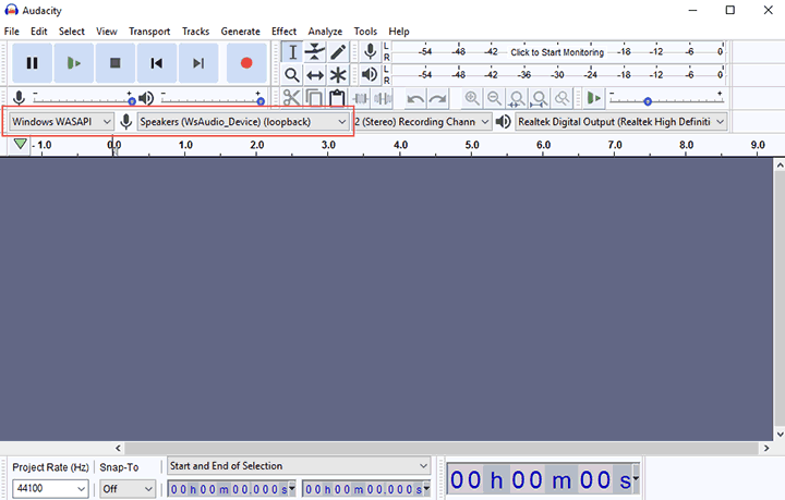 Option 2. Opt for "Windows WASAPI" as the host. Select the loopback input that corresponds to the playback device you'll be using. In my case, I chose "Speakers (Realtek High Definition Audio) (loopback)." This method often results in better sound quality.