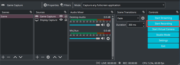 Step 4. Return to the main OBS window and click on the 'Start Recording' button. Now Open Minecraft and play the Minecraft game in full-screen mode. OBS will record your gameplay in real time.